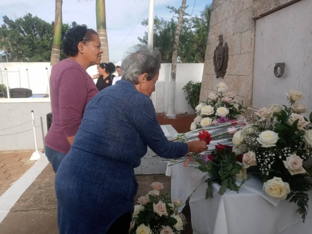 Ofrendas florales de los familiares, autoridades y del pueblo donde vivió su infancia y juventud, se depositaron frente al nicho que guardará sus restos mortales, que descansarán junto a otros caídos en defensa de la Patria.